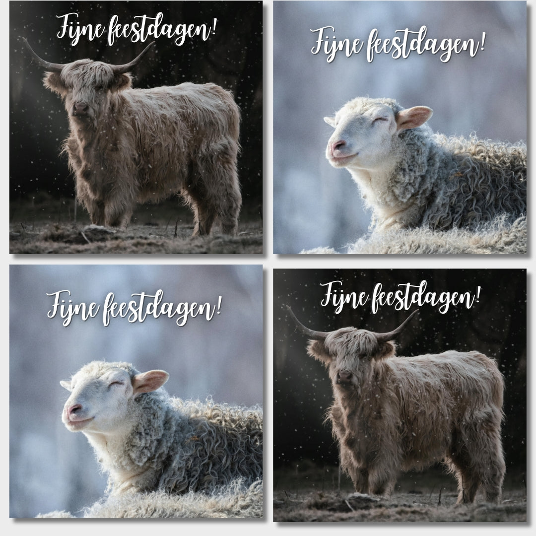We hebben twee prachtige wenskaarten ontworpen met een koe en een schaap in de sneeuw. βοΈππ
